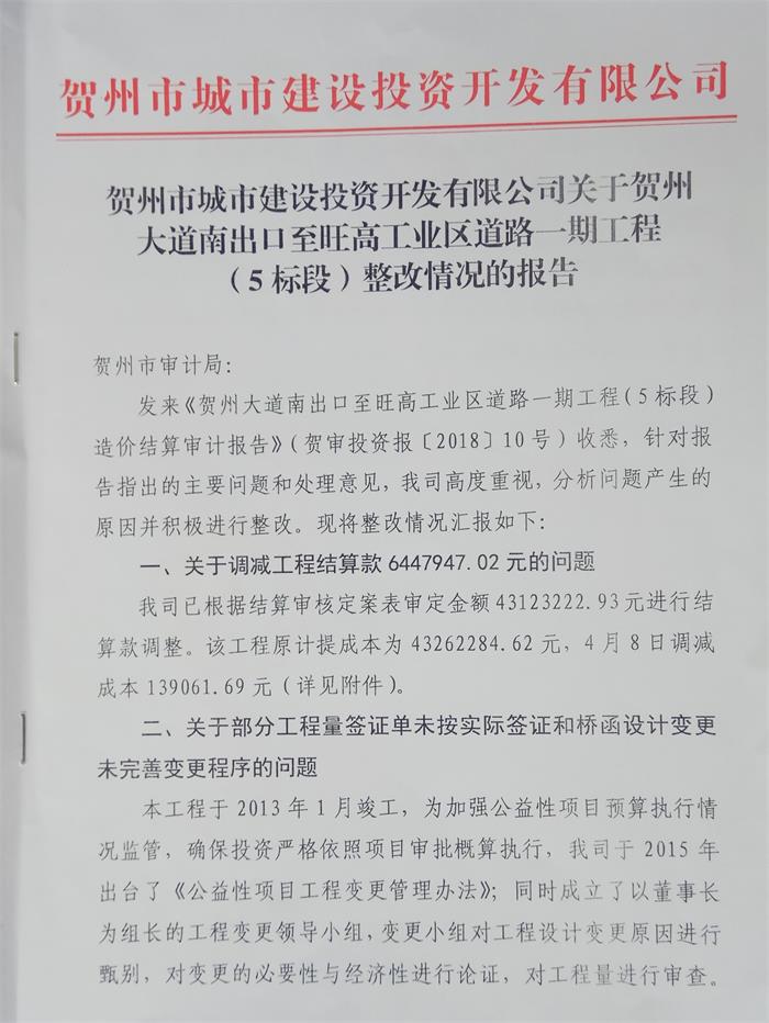 上一篇:關(guān)于賀州大道南出口至望高工業(yè)區(qū)道路一期工程(6標(biāo)段)的整改情況報告