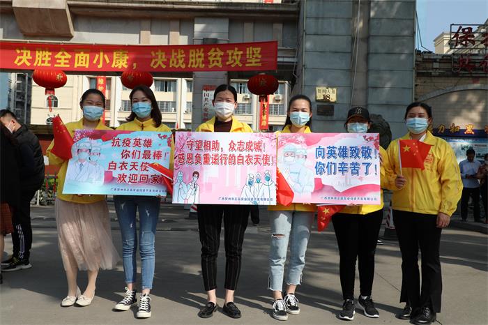 發(fā)布時(shí)間:2020-04-15 作者:文字/何莎莎 視頻/陸陽(yáng)楊 圖片/義潔 來源:本站原創(chuàng) 審核:湯彩燕4月15日下午,賀州支援湖北醫(yī)療隊(duì)33名隊(duì)員圓滿完成工作任務(wù)凱旋而歸。賀州正贏實(shí)業(yè)公司黨支部組織全體黨員干部職工一行到賀州大道迎接英雄歸來,開展“致敬英雄,擔(dān)當(dāng)作為”主題黨日活動(dòng)。