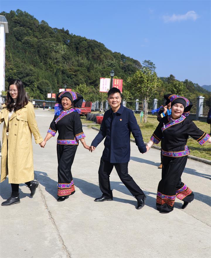 手牽手、心連心,民族團(tuán)結(jié)齊奮進(jìn)。在活動(dòng)中,南鄉(xiāng)壯族山歌隊(duì)為大家演唱了古樸的壯族特色歌曲《歡迎朋友到壯鄉(xiāng)來(lái)》和《南鄉(xiāng)歡迎您》,讓大家充分感受到壯鄉(xiāng)人民獨(dú)特的文化魅力與熱情純樸的民俗風(fēng)情。隨后,全體黨員與鄉(xiāng)民一同開(kāi)展紅色歌曲大家唱活動(dòng),攜手齊唱《唱支山歌給黨聽(tīng)》,共同跳起《愛(ài)我中華》民族團(tuán)結(jié)手勢(shì)舞蹈,并體驗(yàn)了壯族特色的投擲繡球等民俗文化活動(dòng),讓大家感受到了各民族相聚在一起,共敘民族團(tuán)結(jié)之情的良好氛圍。