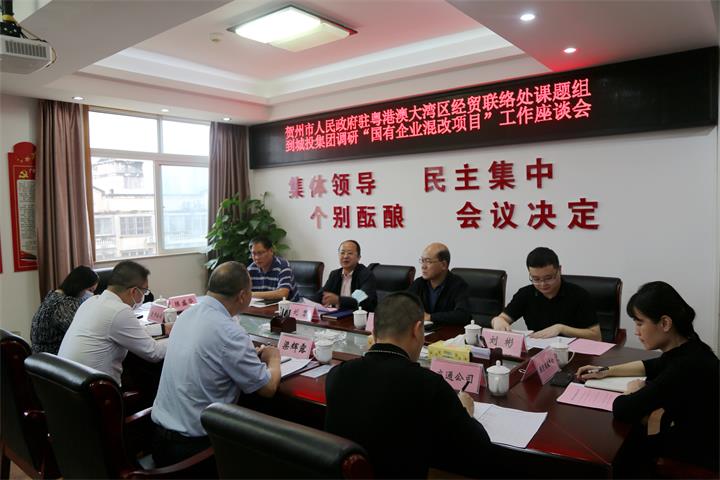 賀州市人民政府駐粵港澳大灣區(qū)經(jīng)貿(mào)聯(lián)絡(luò)處課題組到城投集團(tuán)開(kāi)展調(diào)研