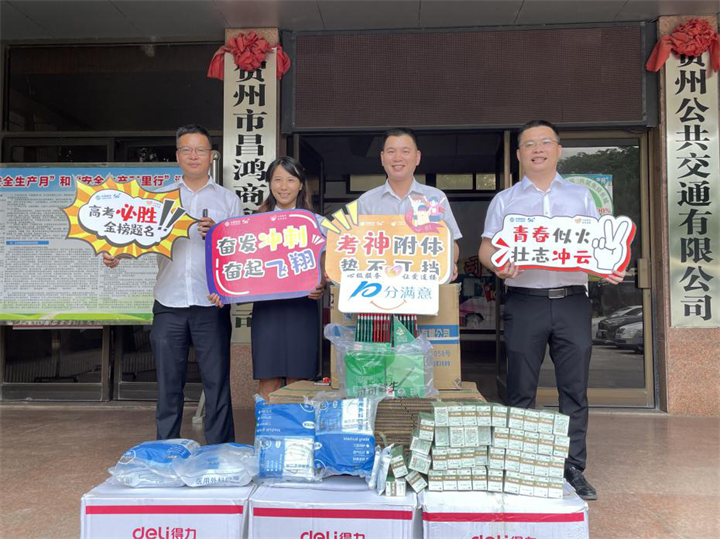 為確??忌軌蝽樌M(jìn)行考試,公交公司聯(lián)合賀州移動(dòng)公司,準(zhǔn)備了“愛心助考物資”箱,內(nèi)放置2B鉛筆、口罩、風(fēng)油精、文具袋、扇子等考生必備的應(yīng)急物資,以供考生應(yīng)急使用。