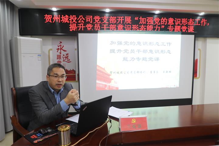 12月15日,城投公司黨支部開展“加強黨的意識形態(tài)工作,提升黨員干部意識形態(tài)能力”主題教育黨課活動。活動由公司黨支部書記、董事長蘭乾雄講授黨課,公司支部全體黨員、發(fā)展對象、入黨積極分子、全體團員等干部職工40余人參加活動。